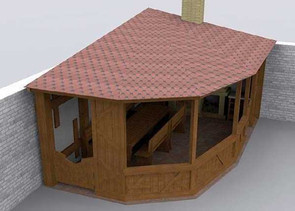 Он может срезаться поперечной линией, образуя удобное место для того, чтобы установить, например, маленькую печь-барбекю (см. Печь барбекю для беседки: технология строительства). В таком случае у беседки будет не пять, а шесть углов.
