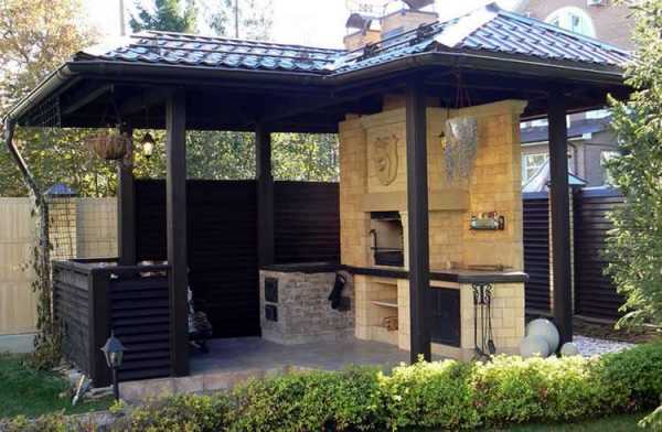 На этом строительство практически завершено, осталось выложить пол тротуарной плиткой и пригласить специалистов, которые установят печь барбекю или мангал. После чего можно приглашать гостей на пикник.