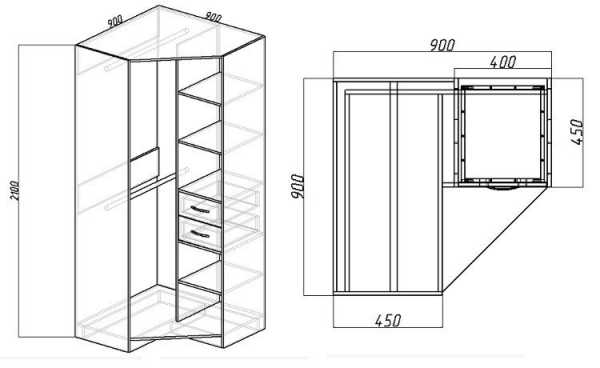 Конструкции, чертежи и фото угловых шкафов