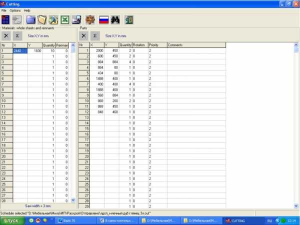 Итого уходит почти 3 листа. Распил можно заказать самостоятельно. Практически все фирмы, продающие лдсп, предлагают услуги по распилу. В среднем лист лдсп стоит 6800-9500тг, распил 600-1000тг за лист. Так же можно сразу заказать и закатку видимых торцов в шкафу – по экселевской табличке видно, что кромки уйдет метров 15-20 с запасом (стоимость 12-20тг за метр меламиновой – ее можно наклеить самостоятельно, ПВХ кромка подороже, вместе с работой от 100тг за метр). Скошенные детали закатывать придется самому – по старинке утюгом меламиновой кромкой. Меламиновая кромка идет уже с клеем, края срезаются ножом (удобно сапожным) и зашлифовываются наждачной бумагой. Фасадную часть можно заказать отдельно скажем с МДФ или акрила (стоимость от 7500тг за кв.м.) – либо добавить в раскрой получится шкаф эконом-класса.