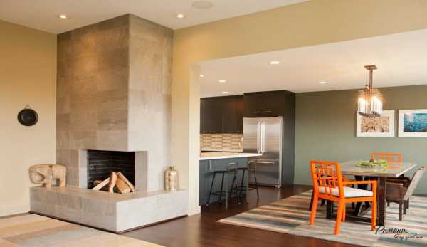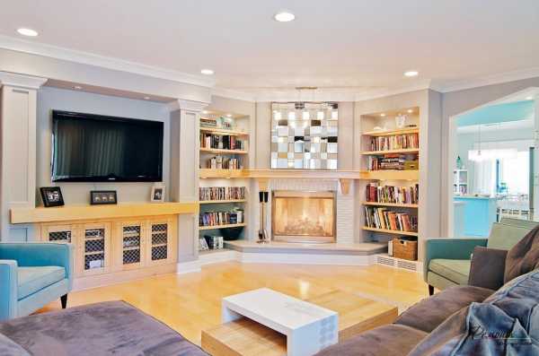 Угловые камины в интерьере гостиной комнаты