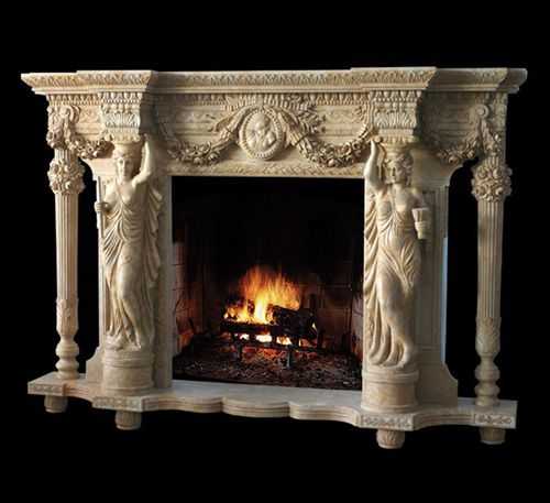 - Камин в стиле ампир – этот камин украшают всевозможными способами отделки: лепниной, колоннами, скульптурами людей и животных, кроме того, над ним вешают гирлянды и венки. Выглядит такой элемент интерьера роскошно и богато.
