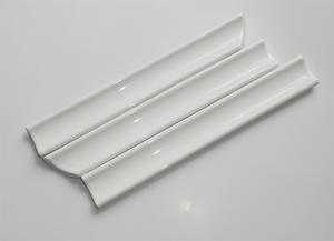 Керамические плинтуса для ванны обладают теми же качествами, что и аналоги для пола, однако, отличаются дизайном и размерами. Они гораздо более низкие – как правило, не более 35 мм в высоту, и имеют вогнутый или треугольный профиль. Для стыка на углах используются специальные керамические уголки, благодаря чему отпадает необходимость обрезки и подгонки планок.