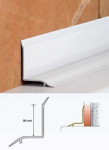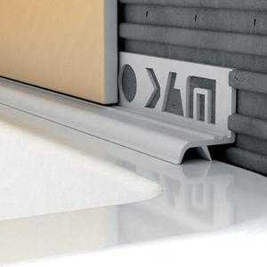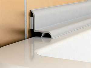 Для монтажа под плитку – представляет собой низкий бортик с «хвостиком», который располагается между стеной и плиткой.