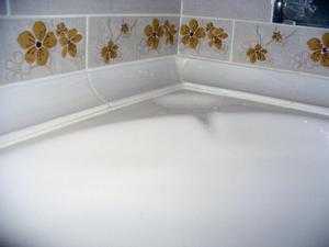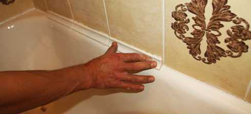 Домашние мастера зачастую интересуются у специалистов — как положить на ванну керамический плинтус? Для этого можно использовать обычный плиточный клей, единственное, предварительно щель между ванной и стеной нужно заполнить герметиком. Кроме того, герметиком заполняются стыки между панелями.