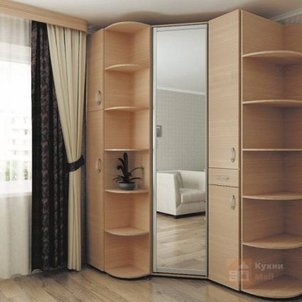 Определяющий фактор различия – форма шкафа. Из-за углового дизайна он в любом случае будет выглядеть компактно, но к каждой комнате следует подбирать наиболее подходящую под интерьер форму. Разновидности шкафов: