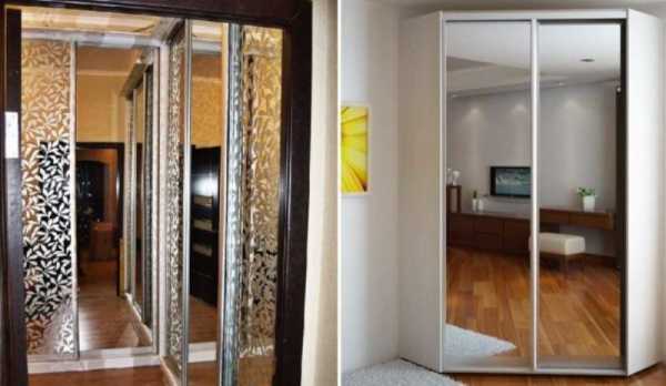 - визуально расширить пространство небольшой комнаты поможет зеркальная лицевая сторона шкафа;