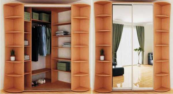 Формы и конструкции угловых шкафов купе