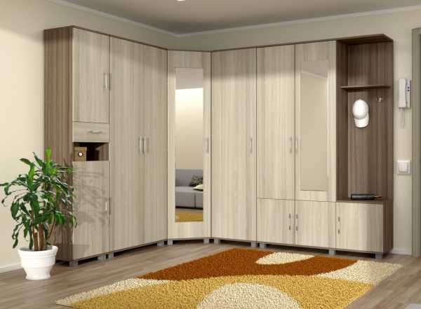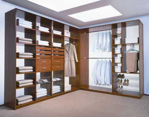 Другой не простой пространственной зоной считается прямой угол, который наиболее ярко проявляется в Г-образной конструкции. Наиболее приемлемым вариантом заполнения считается размещение в этой зоне вешалок с одеждой.
