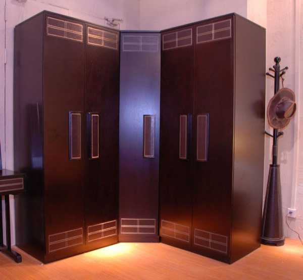 - учитывая массивность подобной конструкции, внешнему виду шкафа угловой формы придается ключевое значение при обустройстве комнаты.