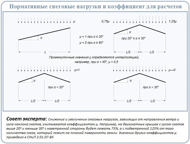 Каждый материал имеет свои индивидуальные технические характеристики и это при расчете необходимого значения угла наклона обязательно следует учитывать.