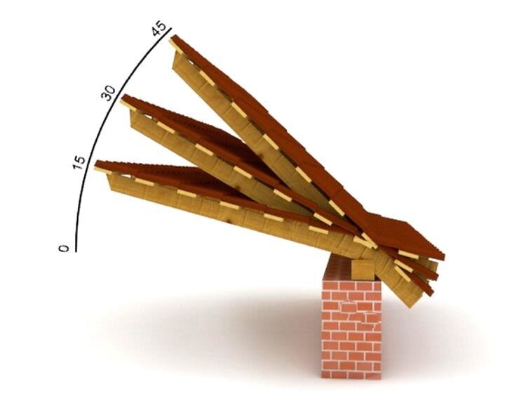 Если же сила ветра невелика, то величина уклона крыши может равняться 30-45 градусов.