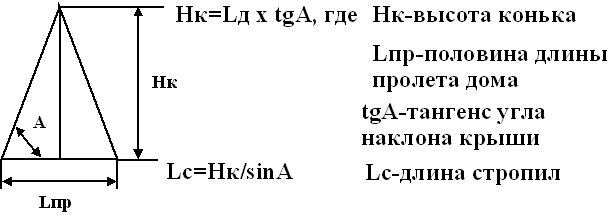 Катет а – это высота от перекрытия до конька.