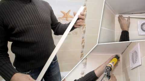 Установка плинтусов на потолок