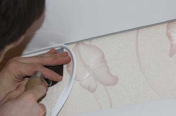 Приложите его к потолку и проверьте геометрию. Если она недостаточно ровная, ее можно немного исправить ножом, а в случае незначительных дефектов и широких зазоров можно воспользоваться шпаклевкой.