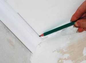 - Прикладываем плинтус к потолку и проводим линию внутреннего его края.