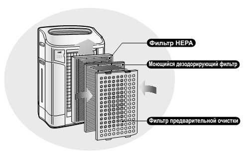При прохождении воздушного потока через воздухоочиститель содержащиеся в нем вредные микрочастицы оседают на фильтре прибора.