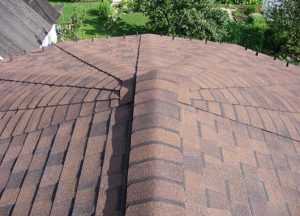 Устройство конька является завершающим моментом настила мягкой черепицы. Используется для этого особый сорт материала – коньково-карнизная черепица. Перед ее монтажом нужно установить коньковый аэратор, обеспечивающий подкровельному пространству свободную циркуляцию воздуха. Он крепится к основанию оцинкованными саморезами, при этом под ним предусмотрительно оставляется щель 5-8 см шириной.