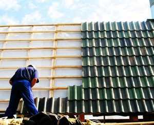 Но при чересчур сильном нагреве черепица делается слишком мягкой и может деформироваться. Поэтому если на улице слишком жарко, по только что уложенному кровельному покрытию нужно перемещаться как можно осторожнее. Чтобы не испортить черепицу, делают специальные защитные помосты. Если сильно светит солнце, лучше проводить строительные мероприятия на теневой стороне кровли.