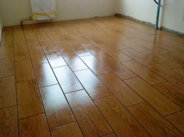 Поверхность пола, облицованная таким способом визуально практически невозможно отличить от паркетного покрытия, особенно если рисунок кафеля имитирует древесину.