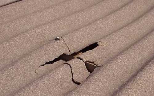 Этот способ не подходит для устранения крупных дефектов. До того, как заделать трещины в шифере большого размера эти места очищают и грунтуют олифой, а затем при помощи густотертой масляной краски на них наклеивают тканевые заплатки, размер которых на несколько сантиметров превышает место нахождения повреждения (подробнее: «Как сделать ремонт шиферной крыши своими руками»). Если предпринятые меры не помогают, лист шифера надо заменить.