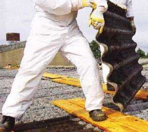 Если укладка шифера на крышу будет производиться своими руками, то вы обязаны знать, что при раскрое этого материала крайне необходимы средства по защите дыхательных путей. Пыль, образовавшаяся в результате распила содержит волокна асбеста, которые являются крайне вредными для организма человека. Такие места сразу же обрабатываются акриловой краской.