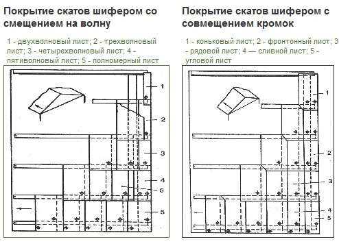 Варианты укладки листов шифера.