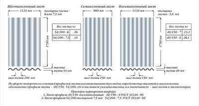 - шестиволновый (толщина листа 5/6/7 мм, ширина 1125 мм)
