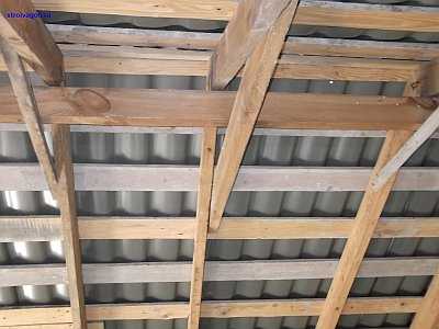 Можно их выполнить из обрезного бруса дерева или металла профиля. Данная конструкция будет нести высокие нагрузки: весь вес кровельного сооружения с учётом окружающей среды и атмосферных явлений. Если ваша крыша подходит только для перекрытия легкими материалами, то при использовании шифера вам необходимо увеличить жёсткость деревянных перекрытий.