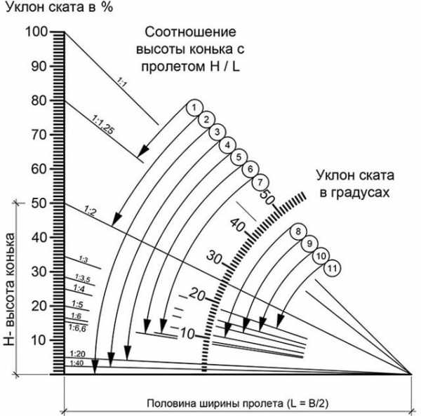 Этот показатель, таким образом, зависит именно от выбранного при проектировании дома угла наклона скатов. Так: