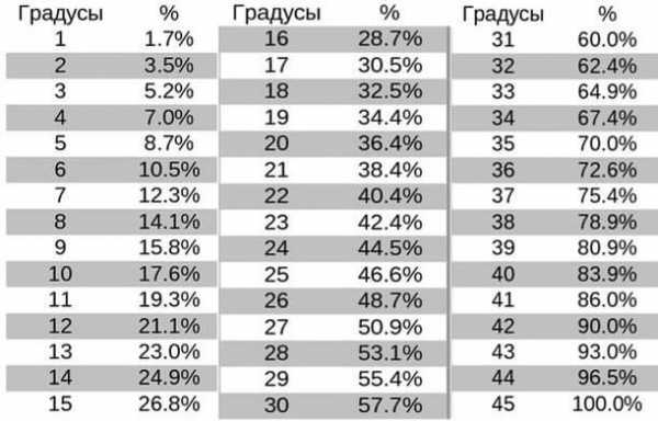 Π£ΠΊΠ»ΠΎΠ½ ΠΊΡΡΡΠΈ 8Β°, ΡΡΠΎ ΡΠΎΠΎΡΠ²Π΅ΡΡΡΠ²ΡΠ΅Ρ Π·Π½Π°ΡΠ΅Π½ΠΈΡ 1:7 β ΡΡΠΎ ΠΌΠΈΠ½ΠΈΠΌΠ°Π»ΡΠ½ΠΎΠ΅ Π·Π½Π°ΡΠ΅Π½ΠΈΠ΅, ΠΊΠΎΡΠΎΡΠΎΠ΅ ΠΌΠΎΠΆΠ΅Ρ Π±ΡΡΡ ΠΏΡΠΈ ΠΌΠΎΠ½ΡΠ°ΠΆΠ΅ ΠΏΡΠΎΡΠ½Π°ΡΡΠΈΠ»Π°. Π ΠΏΠΎΡΠ»Π΅ Π·Π°Π²Π΅ΡΡΠ΅Π½ΠΈΡ Π²ΡΠ΅Ρ ΡΠ°Π±ΠΎΡ Π½Π΅ΠΎΠ±Ρ ΠΎΠ΄ΠΈΠΌΠΎ ΡΡΠ°ΡΠ΅Π»ΡΠ½ΠΎ ΠΏΡΠΎΠ²Π΅ΡΠΈΡΡ ΠΊΡΠΎΠ²Π»Ρ Π½Π° ΠΏΡΠ΅Π΄ΠΌΠ΅Ρ Π²Π΅Π½ΡΠΈΠ»ΡΡΠΈΠΈ. Β Π’ΠΎΠ»ΡΠΊΠΎ ΠΏΠΎΡΠ΅ΠΌΡ ΠΊΡΠΎΠ²Π΅Π»ΡΡΠΈΠΊΠΈ Π² ΠΎΠΏΡΠ΅Π΄Π΅Π»Π΅Π½ΠΈΠΈ ΡΠ³Π»Π° Π³ΠΎΠ²ΠΎΡΡΡ Π½Π΅ ΡΠΎΠ»ΡΠΊΠΎ ΠΎ Π³ΡΠ°Π΄ΡΡΠ°Ρ , Π½ΠΎ ΠΈ ΠΎ ΠΏΡΠΎΡΠ΅Π½ΡΠ°Ρ ΠΈ Π΄Π°ΠΆΠ΅ ΠΊΠΎΡΡΡΠΈΡΠΈΠ΅Π½ΡΠ°Ρ ? ΠΡΠ΅ ΡΡΠΎ β ΠΎΠ΄Π½ΠΎ ΠΈ ΡΠΎΠΆΠ΅, ΡΠ°Π·Π½ΠΈΡΠ° Π΅ΡΡΡ ΡΠΎΠ»ΡΠΊΠΎ Π΄Π»Ρ ΠΏΡΠΎΠ΅ΠΊΡΠ½ΡΡ Π΄ΠΎΠΊΡΠΌΠ΅Π½ΡΠΎΠ² ΠΈ ΠΏΡΠΈ Π·Π°ΠΊΠ°Π·Π΅ ΠΌΠ°ΡΠ΅ΡΠΈΠ°Π»ΠΎΠ². ΠΡ ΠΏΠΎΠ΄Π³ΠΎΡΠΎΠ²ΠΈΠ»ΠΈ Π΄Π»Ρ Π²Π°Ρ ΡΠ°Π±Π»ΠΈΡΡ, ΠΊΠΎΡΠΎΡΠ°Ρ ΠΏΠΎΠΌΠΎΠΆΠ΅Ρ Π²Π°ΠΌ ΡΠ°Π·ΠΎΠ±ΡΠ°ΡΡΡΡ, ΡΡΠΎ ΠΊ ΡΠ΅ΠΌΡ: