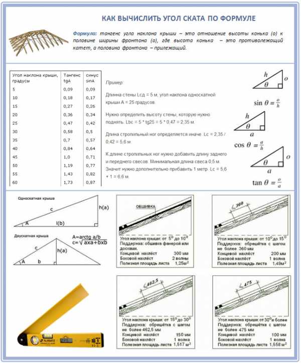 ΠΎΠ΄ΡΡ ΡΠ΅ΡΠ΅Π· ΡΠ°Π±Π»ΠΈΡΡ ΡΠ°Π½Π³Π΅Π½ΡΠΎΠ², ΠΏΠΎΠ΄Π΅Π»ΠΈΠ² Π²ΡΡΠΎΡΡ ΠΊΡΡΡΠΈ Π½Π° ΠΏΠΎΠ»ΠΎΠ²ΠΈΠ½Ρ ΡΠΈΡΠΈΠ½Ρ Π΄ΠΎΠΌΠ° - ΠΠΏΡΠ΅Π΄Π΅Π»ΡΡΡ ΡΠ°Π½Π³Π΅Π½Ρ ΡΠ³Π»Π° ΠΏΡΡΠΌΠΎΡΠ³ΠΎΠ»ΡΠ½ΠΎΠ³ΠΎ ΡΡΠ΅ΡΠ³ΠΎΠ»ΡΠ½ΠΈΠΊΠ° (Tg A) β Π΄Π»ΠΈΠ½Ρ ΠΏΡΠΎΡΠΈΠ²ΠΎΠ»Π΅ΠΆΠ°ΡΠ΅Π³ΠΎ ΠΊΠ°ΡΠ΅ΡΠ° Π΄Π΅Π»ΡΡ Π½Π° Π΄Π»ΠΈΠ½Ρ ΠΏΡΠΈΠ»Π΅ΠΆΠ°ΡΠ΅Π³ΠΎ ΠΊΠ°ΡΠ΅ΡΠ°.