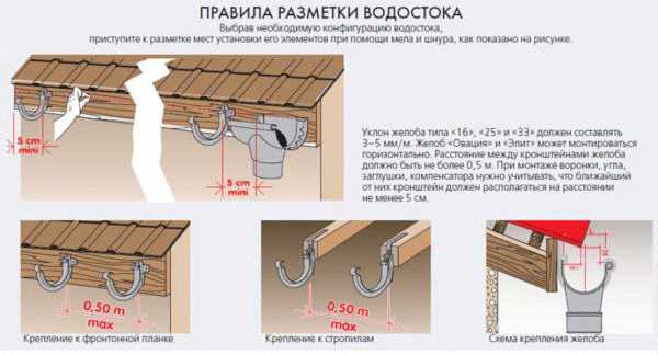 Пошаговое руководство по установке водостока на крышу дома из 6 пунктов1. Установка держателей: кронштейнов и желобов