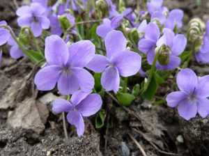 Фиалка украсит клумбу невысокими пышными кустиками с густым цветом. К почве и солнцу не привередлива, но нуждается в постоянном обильном поливе.