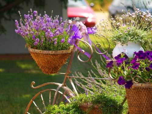 Этот низкорослый цветок с голубыми пушистыми цветами обладает приятным ароматом. Поэтому особенно удачно расположить вазоны с ним вблизи мест отдыха.