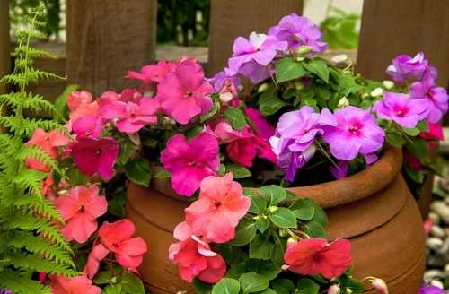 Для выращивания в уличных вазонах лучше всего подойдут однолетние сорта бальзаминов. Радовать цветением они будут с начала лета и до поздней осени.