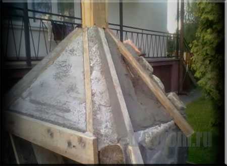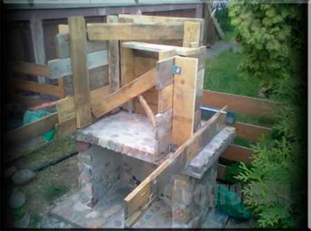 Выложив камнем дымоход, извлекаем удерживавший каркас.
