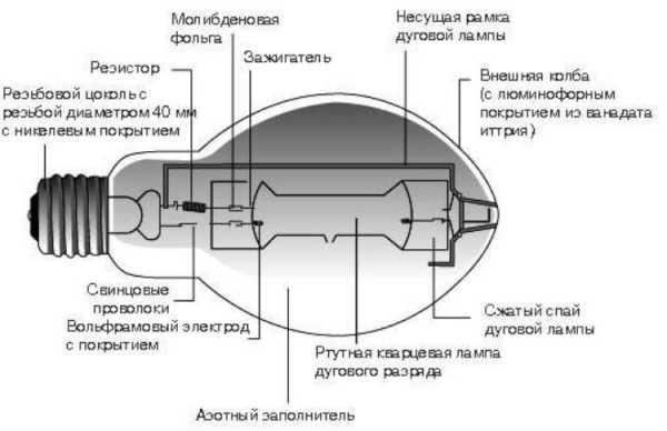 Такова стандартная схема устройства ртутной лампочки. Однако каждая деталь требует более полного описания. Это поможет понять принцип работы всего приспособления. Остановимся подробнее на некоторых конструктивных элементах: