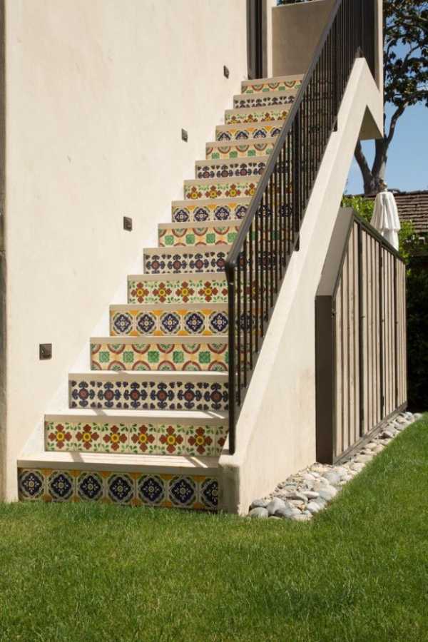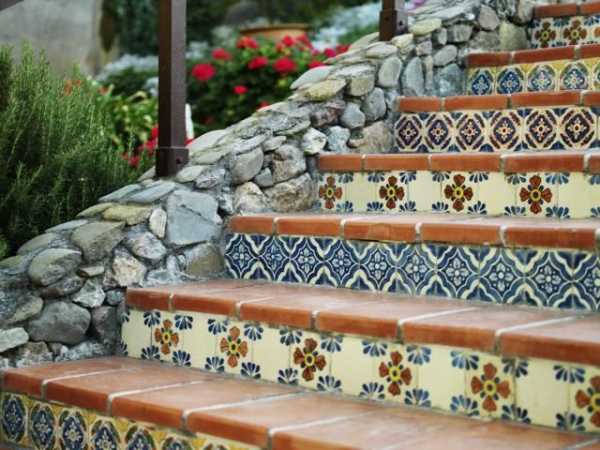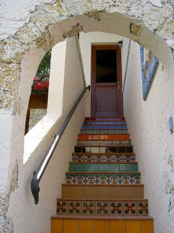 Плитка лестницы способна прекрасно подчеркнуть средиземноморский стиль строения
