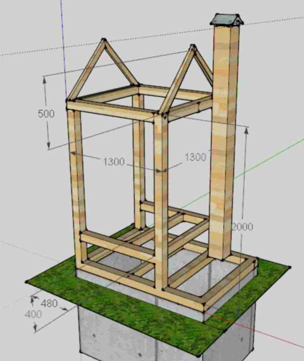 Каркас туалета собирается из бруса.