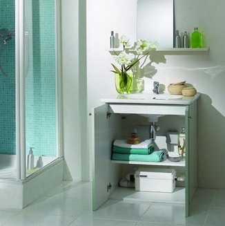 - Конструкция под встраиваемой раковиной — это не только громоздкий элемент, занимающий место в ванной. Это еще и дополнительное место хранения.