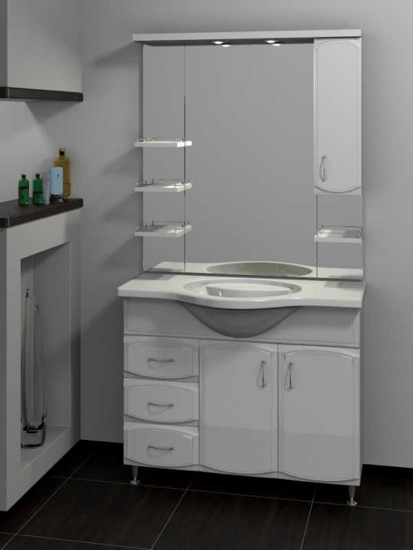 Чтобы вам было проще подобрать модель для своей ванной комнаты, для начала продумайте, где будет стоять комплект, и какую функцию он будет выполнять. Если вам нужен максимально компактный набор мебели с парочкой шкафчиков, подойдет классический напольный вариант. Если ванная у вас маленького размера и использовать нужно буквально каждый сантиметр, подбирайте угловой мойдодыр.