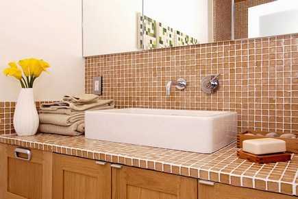 - При выборе такого варианта раковины вы приобретаете дополнительную поверхность в ванной. Столешница в ванной делает использование этого помещения более удобным. Эту поверхность можно задействовать и для декора — например, поставив на нее свечи и вазу с цветами.