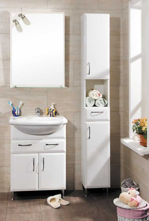 Не лишним будет, если полочки будут предназначены для полотенец. Иногда, комплект подобной мебели имеет встроенную корзину для белья.Зеркало в комплекте Мойдодыр, может быть как отдельным полотном.