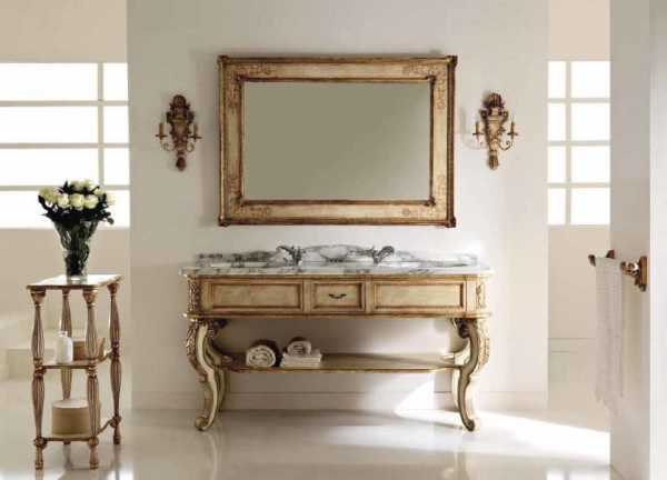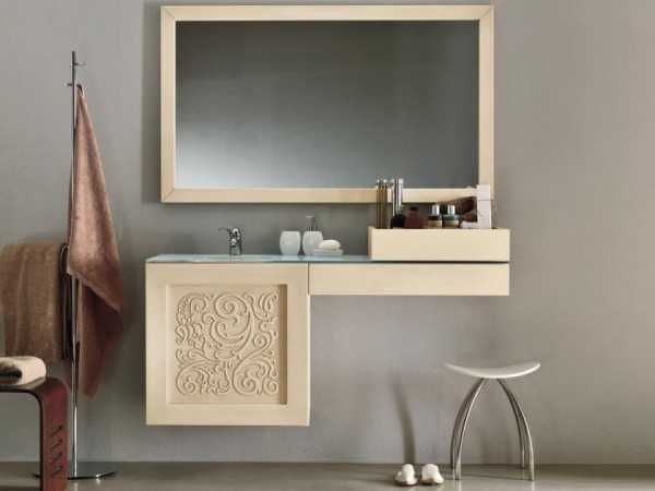 Одно из перспективных направлений, на сегодняшний день, в дизайне ванной комнаты, считается применение такого сочетания: «зеркальце + тумбочка под умывальник с зеркалом в ванной» наподобие уборного столика.