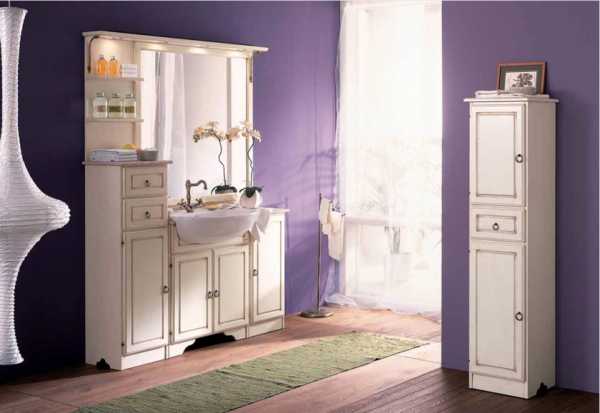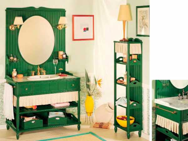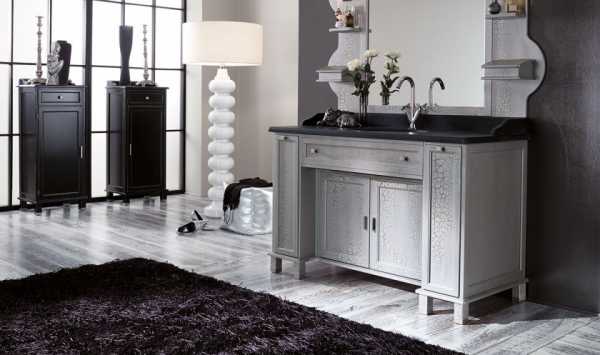 Подобный комплект мебели не обязательно должен состоять из классической раковины, тумбы и зеркала.