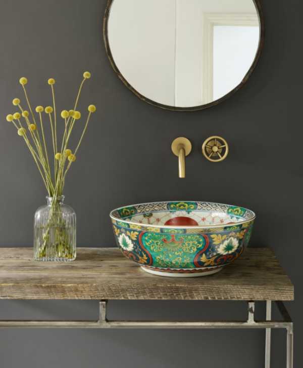 Красивый фаянсовый умывальник в виде чаши