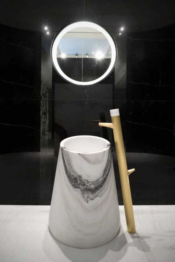 Яркий акцент для ванной комнаты — умывальник на ноге, что расширяется к низу