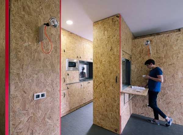 В силу того, что плиты твердые и не дадут перекоса, из них изготавливают массивные шкафы. Среди дополнительных преимуществ стоит отметить наличие декоративной структуры. Мебель изготавливается просто, но смотрится очень необычно, а порой ей даже не требуется дополнительная отделка.