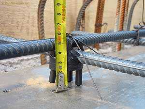 | Защитный слой бетона для арматуры монолитных железобетонных фундаментов составляет не менее 35 мм. | Меньший защитный слой бетона может привести к коррозии арматурного каркаса фундамента плиты. | |